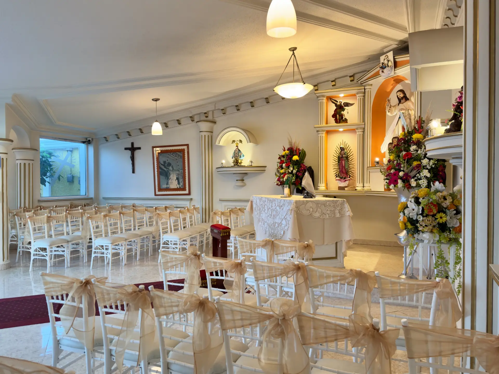 Dentro de nuestras instalaciones, encontrarás El Señor de la Misericordia: una capilla moderna, elegante y acogedora, pensada para acompañarte en las ceremonias más importantes de tu vida.